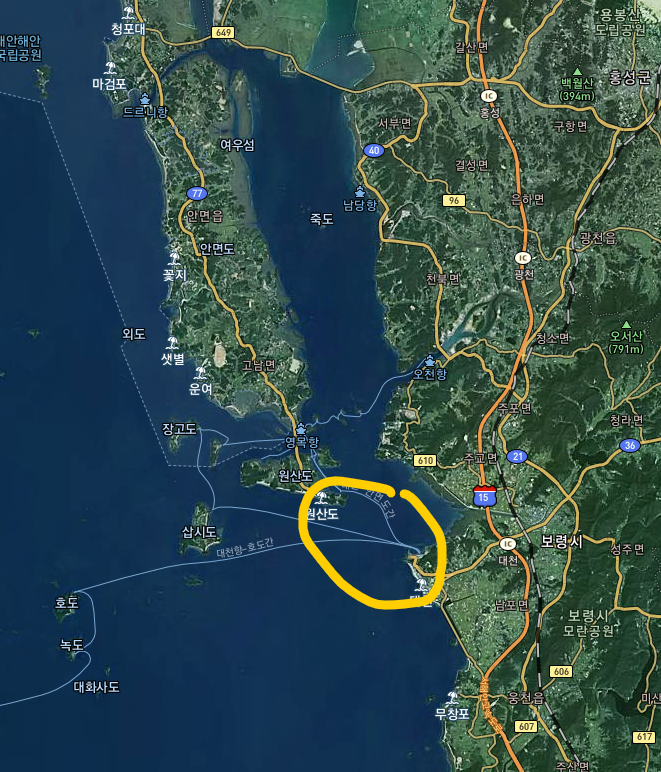 충남 보령시 신흑동에서 태안군 고남면 고남리까지 총 14.4km를 잇는 국도 77호선 태안-보령 연결도로의 중간에 위치하고 있습니다. 태안-보령 국도(총 사업비 6879억 원)는 보령해저터널이 포함된 1공구인 대천항~원산도 사이 6.9km가 2021년 12월 개통되며, 2공구인 원산도~태안군 영목항까지 1.8km 구간은 다리(원산안면대교)가 설치돼 2019년 12월 개통된 바 있습니다. 나머지 5.4km는 도로와 연결된 구간입니다.