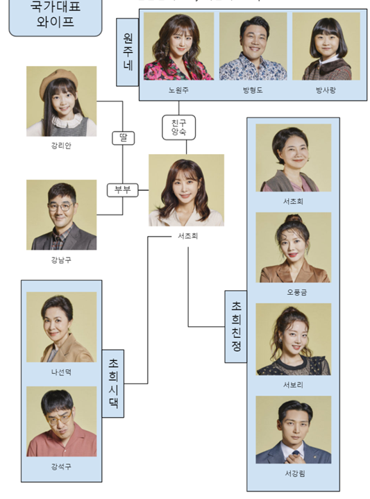 국가대포 와이프는 강남의 집 한채를 통해 삶의 클래스를 올리려 분토하는 서초희가 행복은 집이 아니라 그 집에서 서로를 보듬고 살아가는 사람임을 깨닫게 되는 휴먼 가족드라마 입니다.