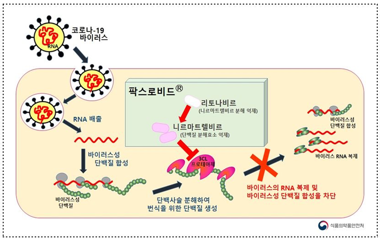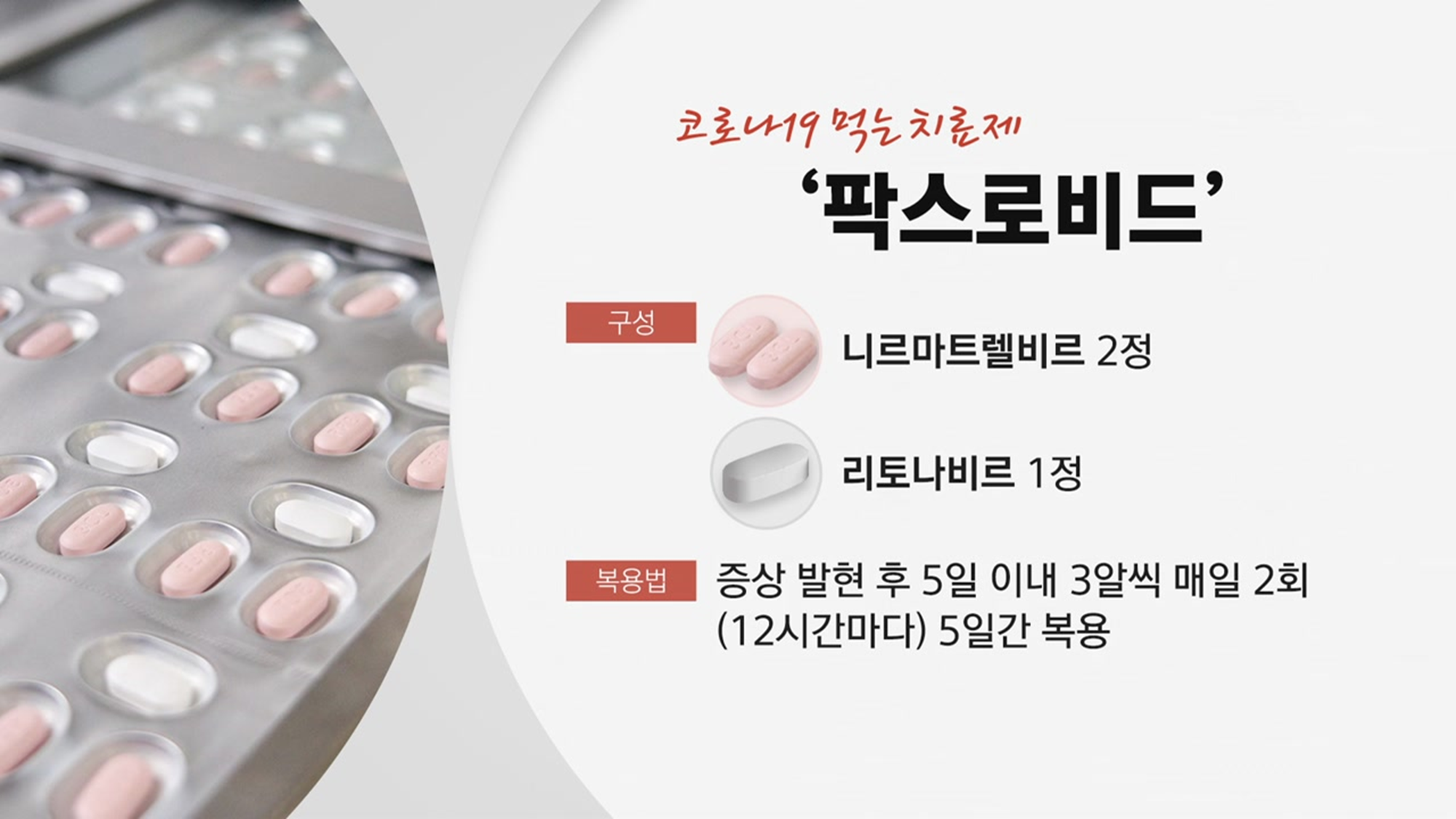 Q. 팍스로비드는 어떻게 복용하나요?A. 팍스로비드는 ‘니르마트렐비르’와 ‘리토나비르’라는 2가지 의약품이 함께 포장되어 있습니다.