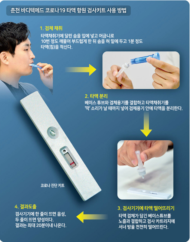 또한 도말 검체를 검체용액과 섞은 뒤 검사키트에 3-4방울 떨어트려야 하며, 15~30분 내에 결과를 확인해야 하는 방식 또한 동일하다.