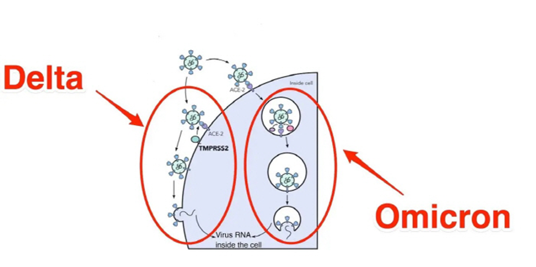 오미크론은 주로 상기도 감염이다. 일반 감기 증상과 비슷한 것으로 알려졌다. 하기도까지 감염시켜 폐렴을 유발하는 델타 변이와도 조금 다른 양상을 보인다.