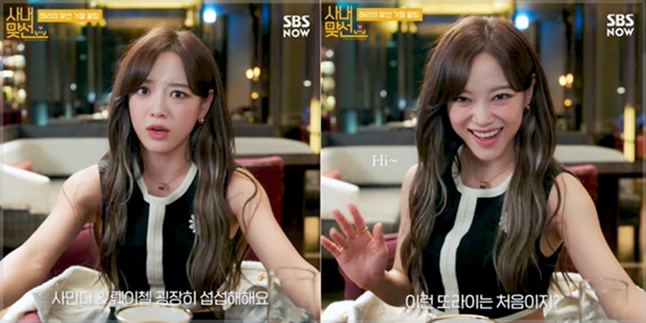 신하리는 맞선남 강태무 앞에서 덥다며 재킷을 벗어버리는 것을 시작으로 능청스럽게 비호감 작전을 시작했습니다. 명품을 '베이비'라는 애칭으로 부르며 표정부터 몸짓까지 과장해 표현했지만 오히려 강태무는 신하리에게 호감을 표현했고, 신하리는 최후의 작전으로 '사만다'와 '레이첼'을 소개했습니다.