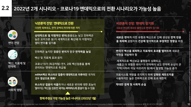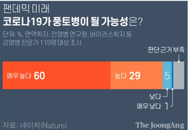 코로나 팬데믹(pandemic)이 조만간 정점을 찍고 엔데믹(endemicㆍ전염병의 풍토병화)이 될 것이라는 전망이 나오고 있습니다. 실제 정부에서는 여러 규제들을 완화하고 있는듯 합니다. 실제 미국은 마스크를 안써도 되고, 일상생활로 복귀하도록 방향을 잡았다고 합니다. 전세계가 그 방향을 따라가고 있는 듯합니다.