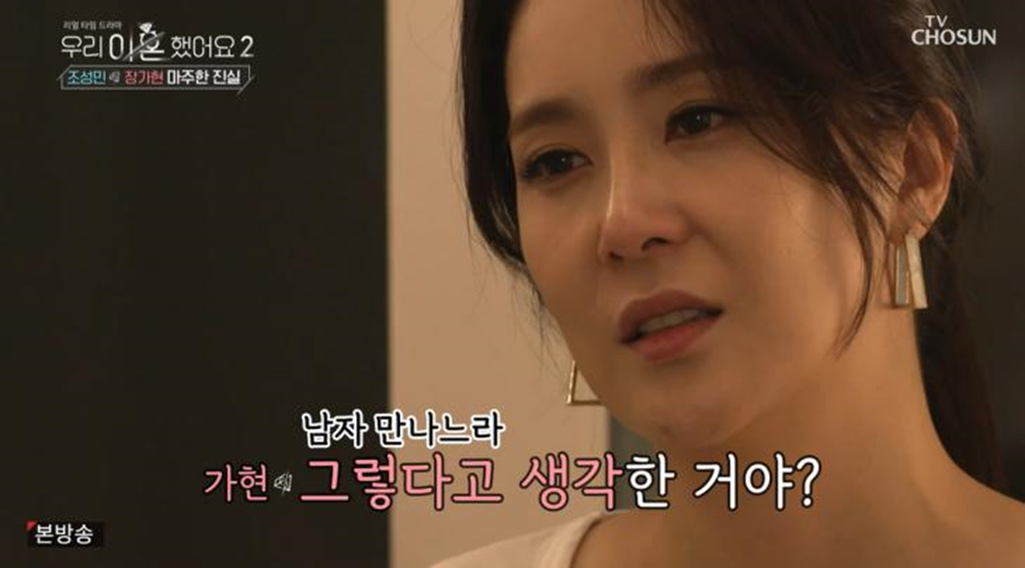 배우 일까지 하면서 집안 경제의 상당 부분을 본인이 부담해오며 존재감이 없는 남편에 대해 회의감을 느껴왔다고 합니다. 조성민 역시 매우 힘겨운 태도로 자기 나름대로는 아버지의 역할을 다하기 위해 최선을 다해 살아왔다고 변론했지만 장가현은 전혀 납득할 수 없다며 끝을 맺은것 처럼 보입니다. 그동안 장가현 배우님의 마음 고생이 심했음을 짐작할 수 있는 프로그램 이었습니다.
