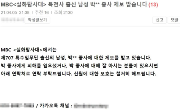 - MBC실화탐사대 이슈논란