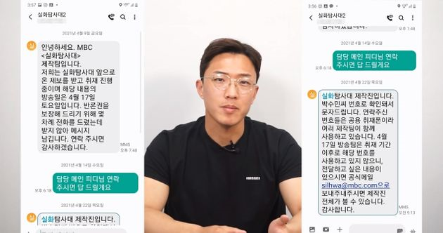 박수민씨가 공개한 문자메시지를 보면, MBC ‘실화탐사대‘가 연락을 한 것은 4월9일입니다. 박수민씨가 답을 한 것은 그로부터 5일 뒤인 14일입니다. 14일은 MBC 실화탐사대의 방송을 예고한 날이었다고 합니다.