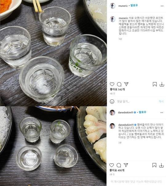 이후 에릭과 김동완은 4개의 소주잔이 놓여져있는 사진을 각자의 SNS에 업로드하며 "멤버들끼리 만나 허심탄회하게 이야기하고 있다"고 밝혔습니다.