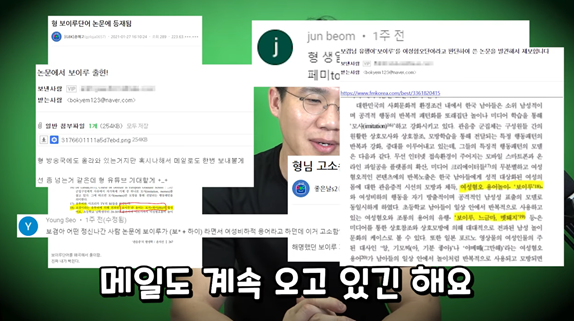 그러면서 "한남유충, 여성혐오 이 모든 것의 숙주를 보겸이라는 유튜버로 덤탱이 씌우는 거다. 사람 인생 X되라고 뿌려버리는 거냐"라고 분노했습니다.