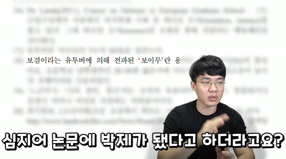 논문에는 "초등학교 남아들이 일상 안에서 반복적으로 사용하고 있는 여성혐오와 조롱의 용어 유행- '보이루', 느금마, 멧퇘지' 등은..."이라는 내용이 담겼는데요. 이에 보겸은 "큰일났다. '보이루'를 패드립에 갖다 붙이는구나"라고 억울해했습니다.