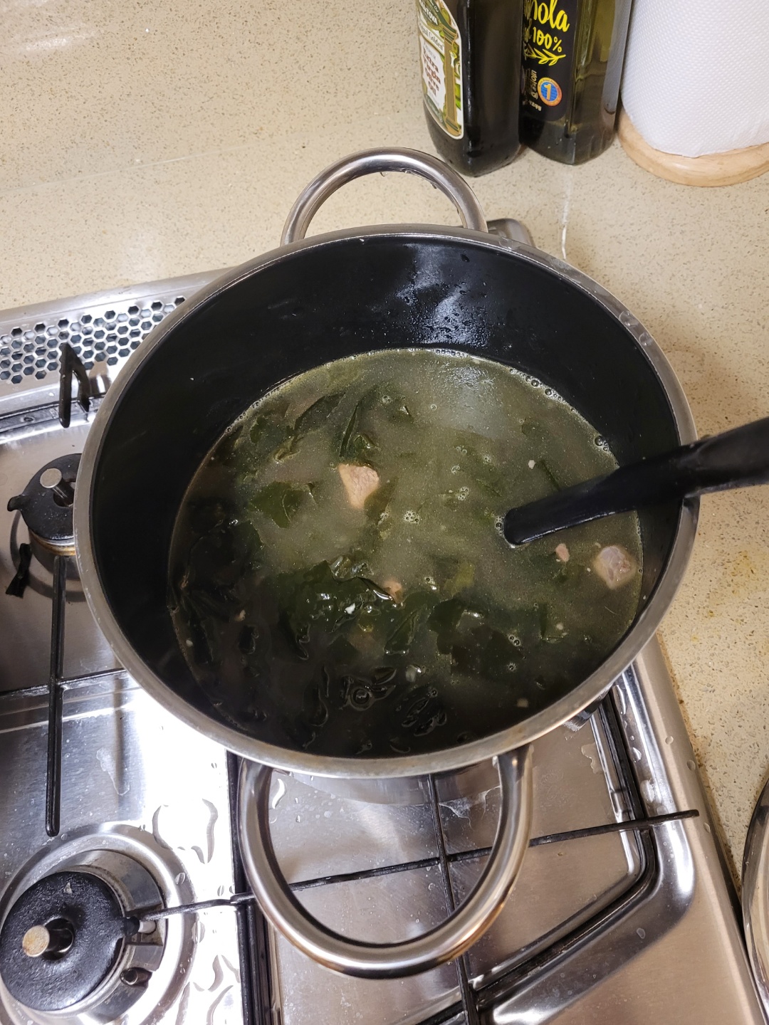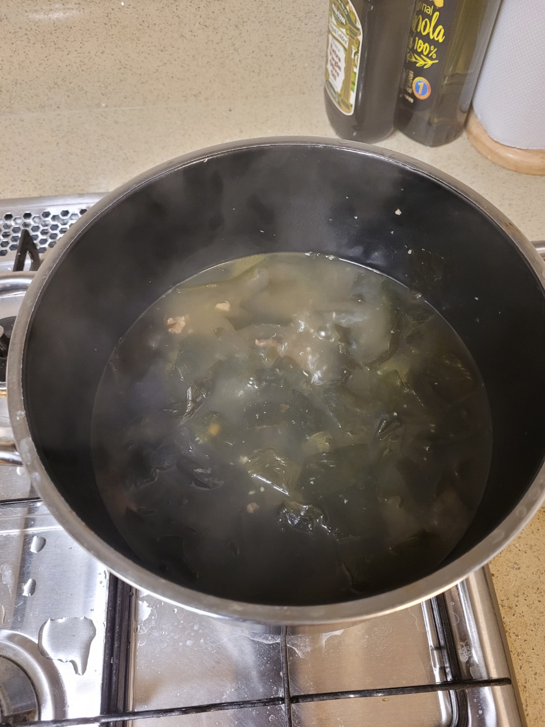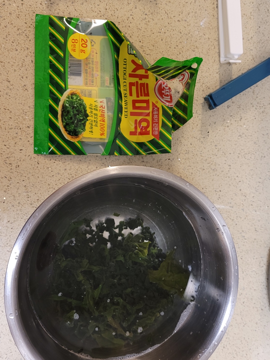 1) 미역을 물에 불린다. (생각보다 미역을 물을 잘 먹어서 부피가 엄청 늘어납니다.)