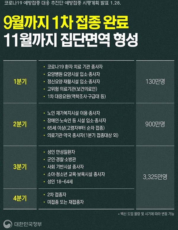 '21년 1월에 발표된 접종 대상자 계획안은 아래와 같습니다.