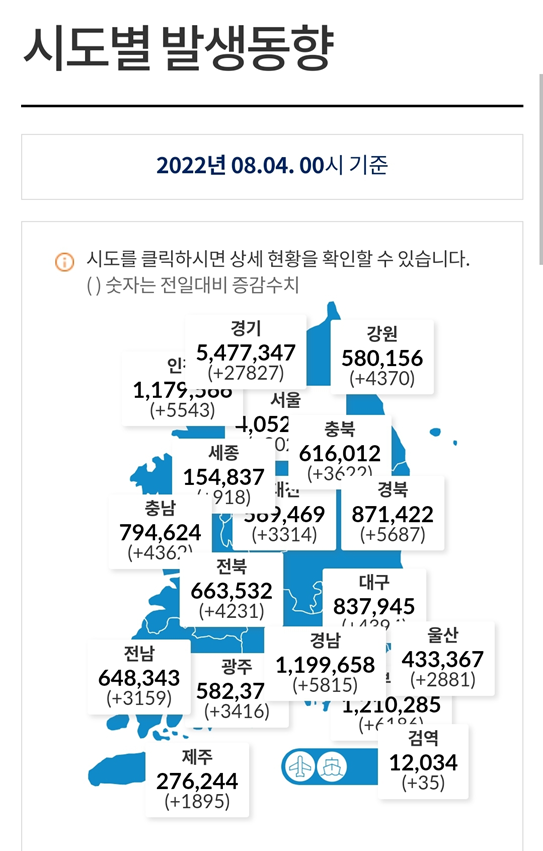 2022년도 8월5일 목요일 국내 코로나19 확진자 현황에 대해 알아보겠습니다.